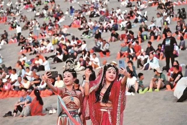 当暮色漫过鸣沙山的脊梁,晚风轻抚月牙泉的碧波,一场万名游客自发共唱的“落日合唱派对”在甘肃敦煌火热上演。大漠为幕布,沙丘为舞台,不但有手机电筒的“满山星光”,还有“生成式AI+多模态互动”技术联动线上线下,直播间数十万用户同步沉浸式参与,全网曝光量突破12亿次。