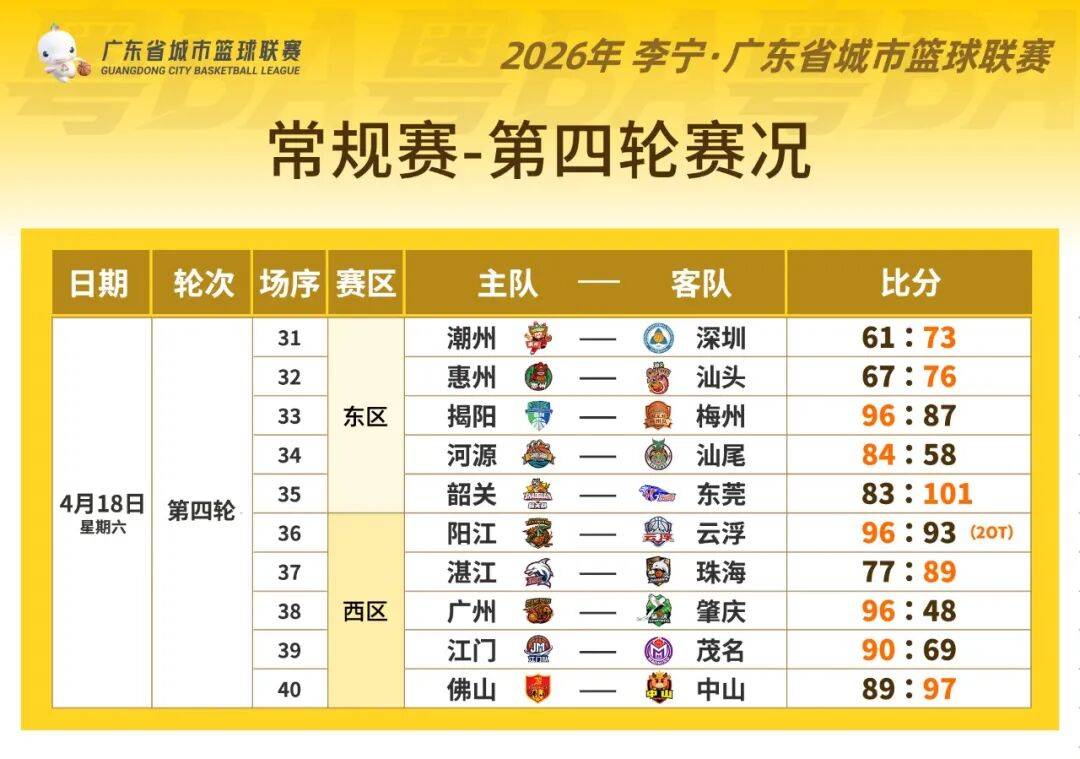 笑归笑,但比赛的精彩程度一点都不含糊。就在刚过去的这个周末,粤BA第四轮比赛正式收官。四轮34场比赛中,双加时、压哨绝杀、落后22分大逆转轮番上演。