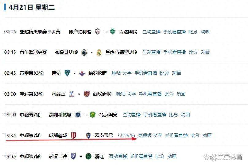 而最引人瞩目的莫过于4月21日19点35分上演的榜首大战,成都蓉城坐镇主场,迎战来势汹汹的云南玉昆,CCTV16将现场直播这场巅峰对决。成都蓉城在本赛季表现抢眼,六轮战罢,豪取5胜1平的佳绩,积16分高居榜首,是中超联赛中唯一一支保持不败金身的球队。更令人惊叹的是,他们在客场连续三场零封对手,攻防两端均表现出色。反观云南玉昆,上轮主场0-3惨败于排名垫底的球队,士气遭受重创。他们所获得的9个积分全部来自高原主场,客场表现一直不稳定。此番客场挑战领头羊,恐怕难以招架。