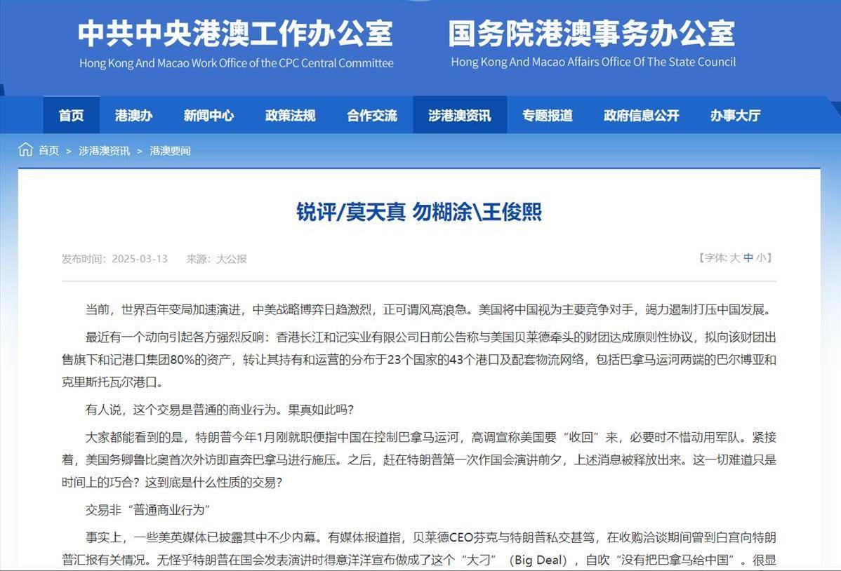 《大公报》连发两篇评论,《莫天真 勿糊涂》和《伟大的企业家都是铮铮爱国者》,字字恳切,国务院港澳办官网还接连转载了这两篇文章。