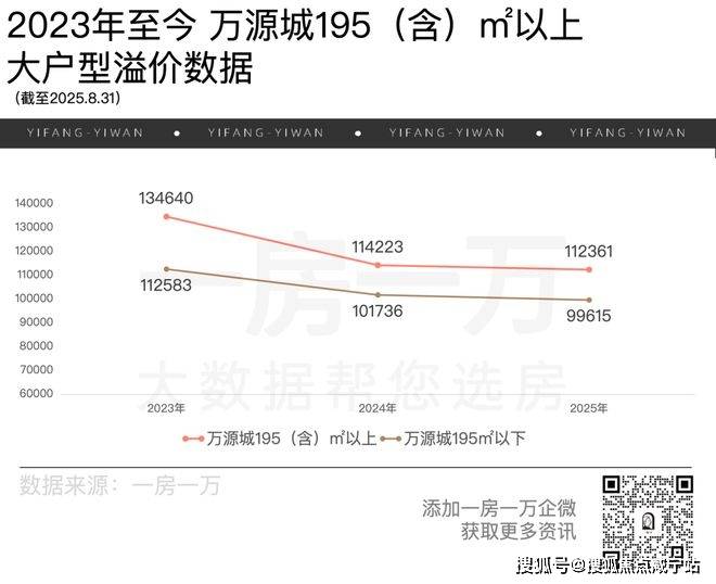 就拿同区域同样是二手次新大盘标杆的万源城来说,195(含)㎡以上大户型的成交价格,始终要比更小面积产品高出一大截。